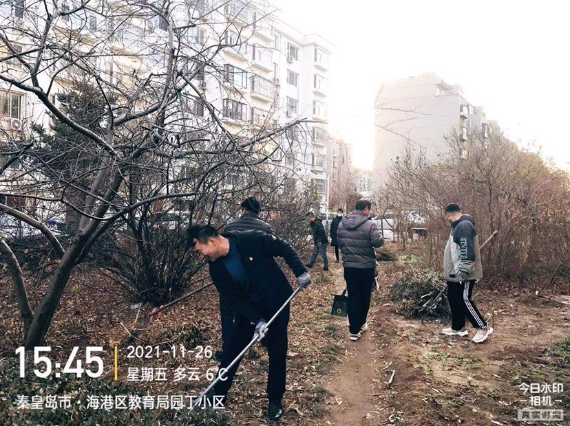 慰問結(jié)束后,全體黨員以“清除雜草、美化環(huán)境”為主題,對園丁小區(qū)進(jìn)行了依次清掃樹葉雜草的主題黨日活動。